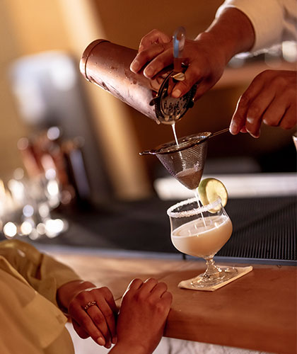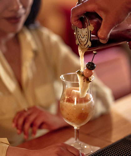 Disfruta cócteles artesanales y bebidas locales en un ambiente cálido, sofisticado y acogedor.